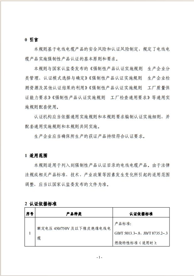 電線電纜 強(qiáng)制性產(chǎn)品認(rèn)證實(shí)施規(guī)則